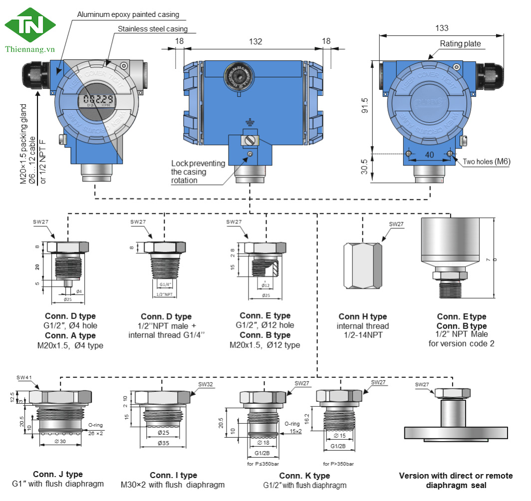 | Casing | Aluminium, 316SS |