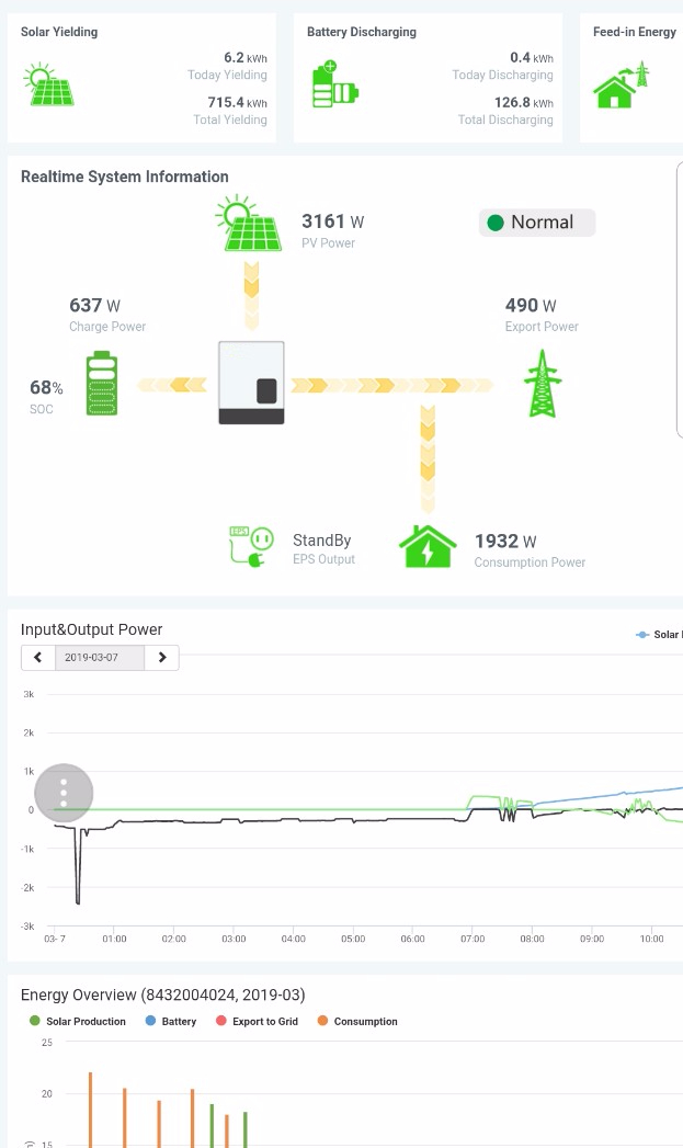 Ưu tiên tự sử dụng, dư điện sẽ hòa lưới bán điện. Hệ thống hoạt động hoàn toàn tự động từ việc sử dụng điện lưới EVN khi bị mất điện sang dùng Ắc-quy dự trữ.