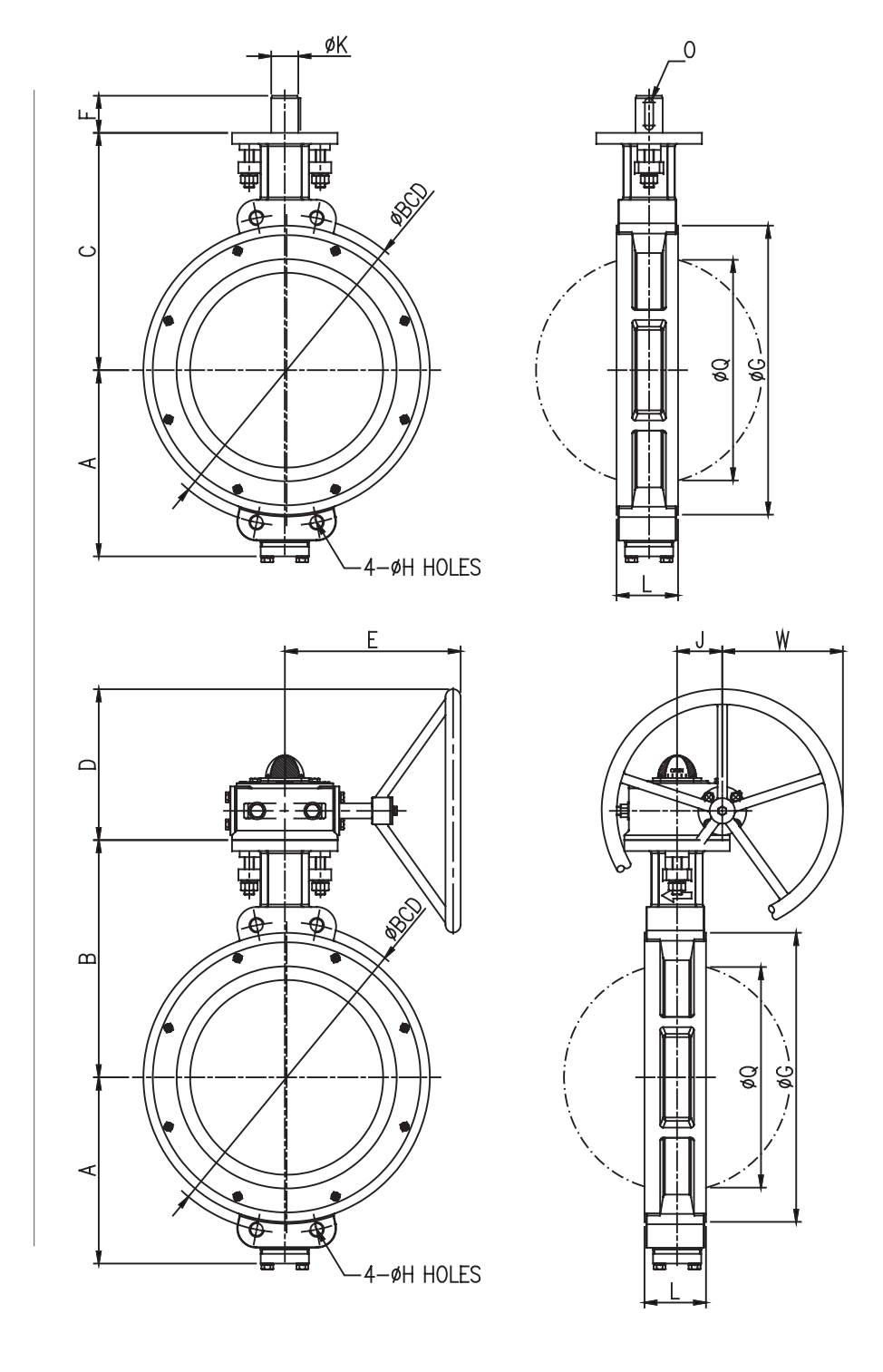 Kích thước có thể thay đổi mà không cần báo trước. / Kích thước mặt đối mặt (L) phù hợp với API 609 Loại B Class 150