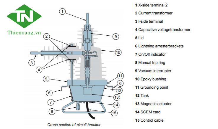 The switching mechanism and switchgear microelectronics are enclosed in a stainless steel tank.